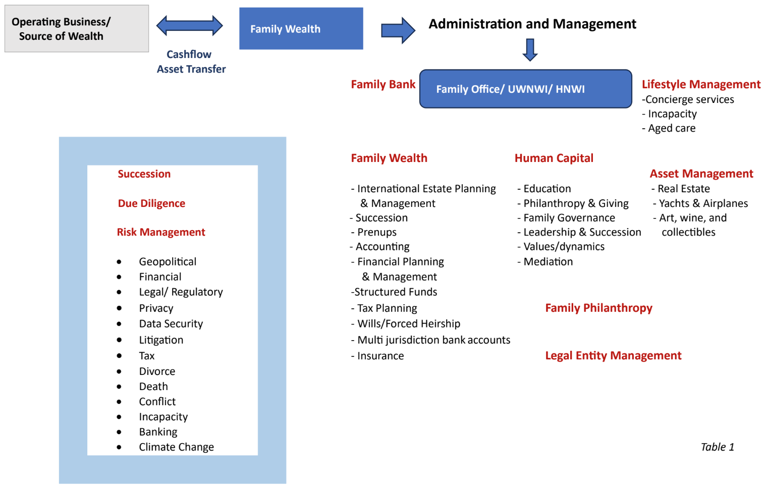 Currently we live in a time where both internal and external forces threatening family wealth are not only prevalent but also mercurial. Some potential risks are easily identifiable and can be dealt with well in advance, such as divorce, death, incapacity, taxes, family conflict, and succession. Whereas others, are predicably unpredictable such as geopolitical, financial, legal, and regulatory. Both categories now requiring constant vigilance and the ability to act upon in a timely manner.